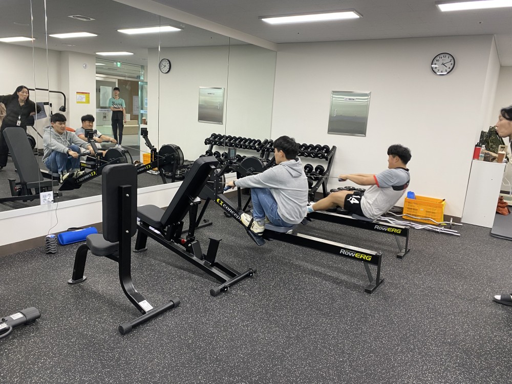 체력증진 수업에 함께 참여하는 강릉 조정 대표선수들
