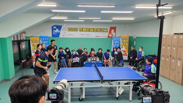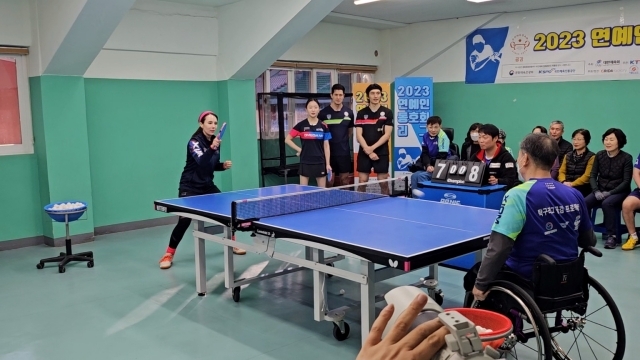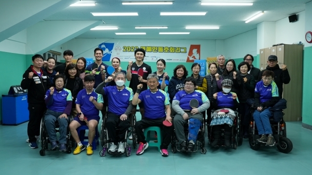 장애인 선수들과 연예인이 탁구로 하나가 됐다.