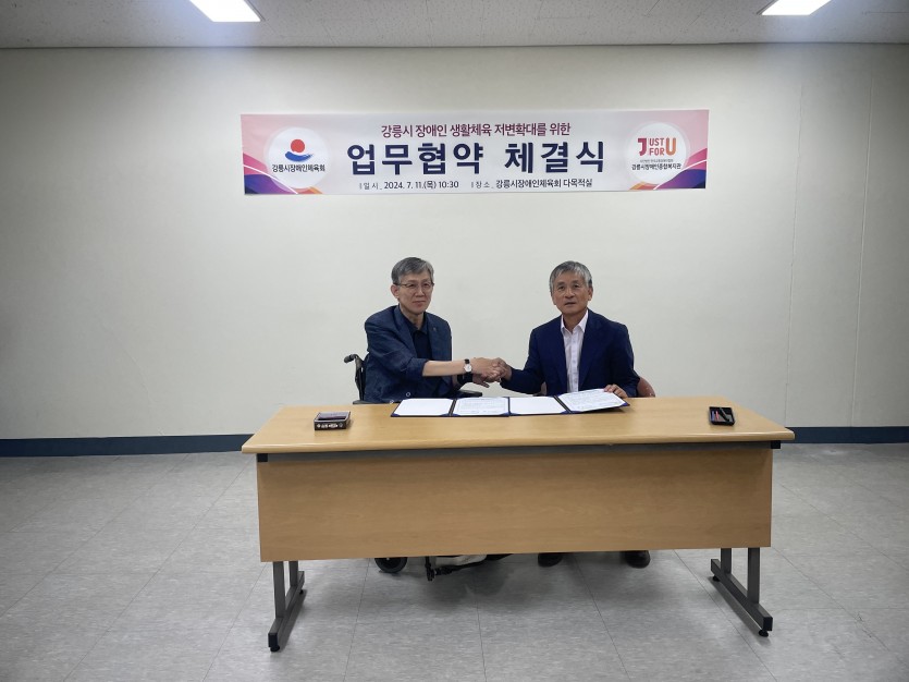 강릉시장애인체육회와 강릉시장애인종합복지관은 11일 장애인체육회에서 강릉시 장애인 생활체육 저변확대를 위한 업무협약을 체결했다.