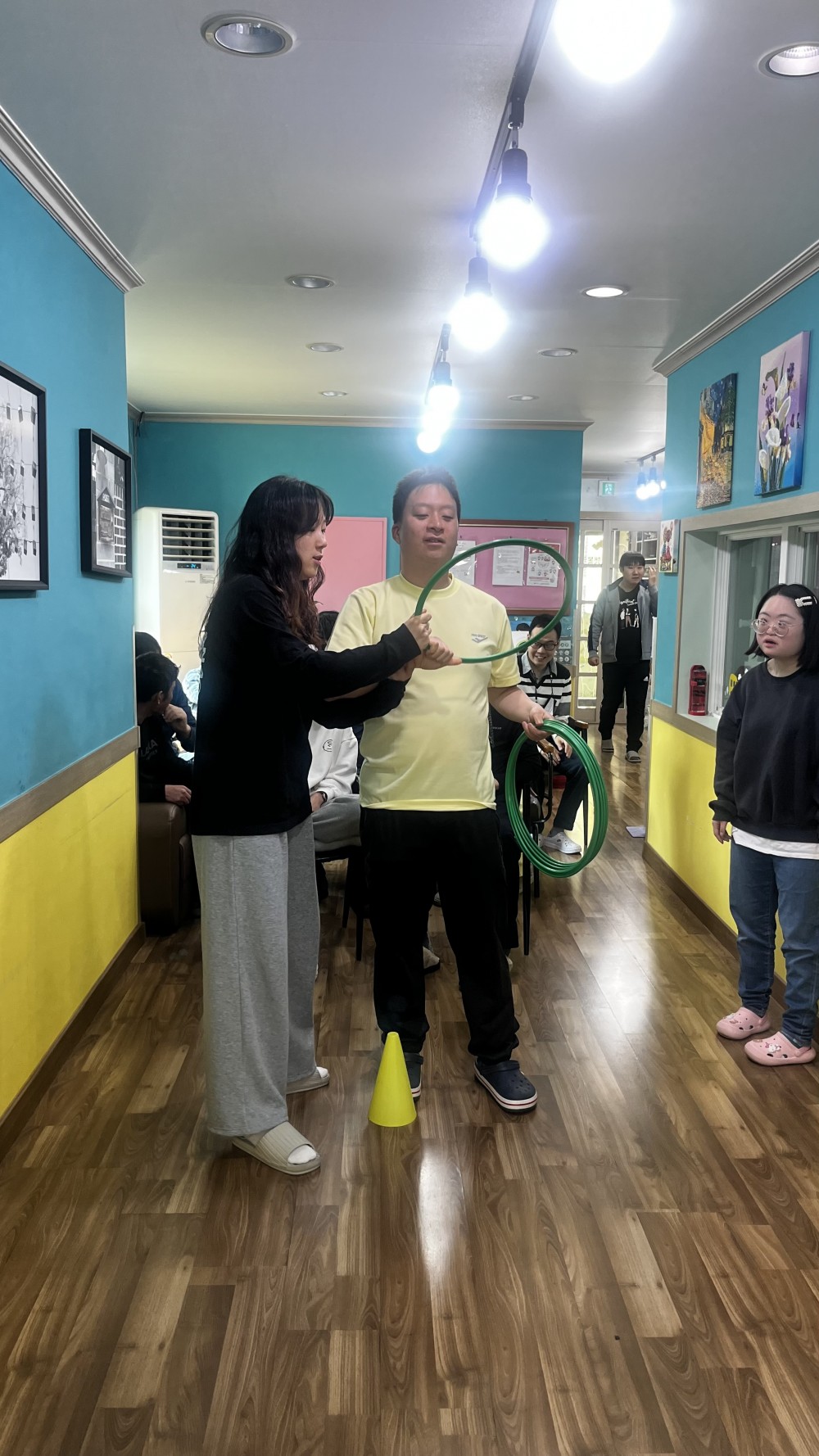 콘 옮기기, 링 던져서 걸기를 통해 집중력 향상 연습